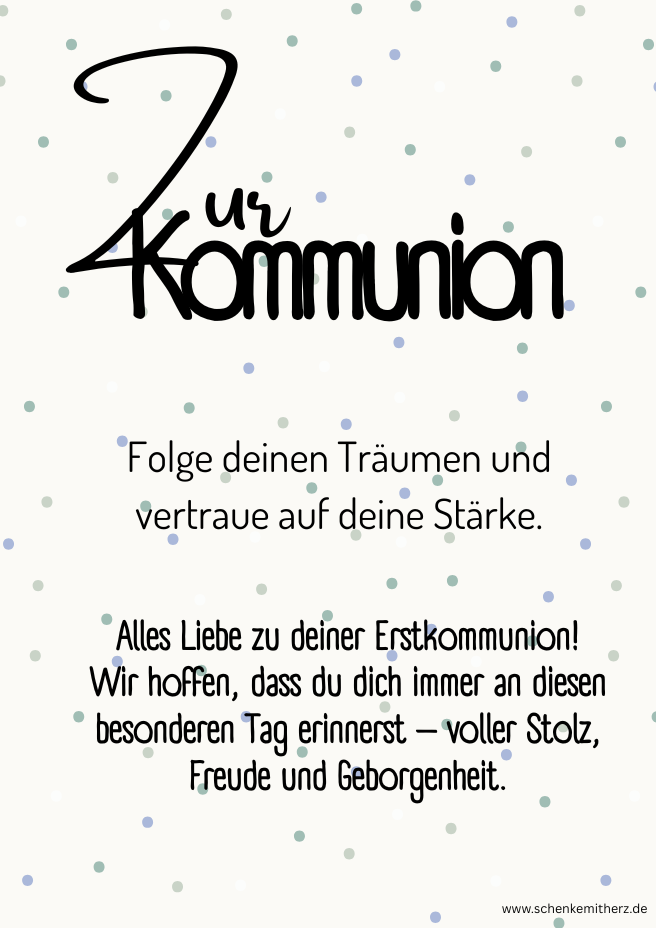 - Zu deiner Kommunion wünsche ich dir Vertrauen, Mut und viele schöne Erfahrungen auf deinem Lebensweg.